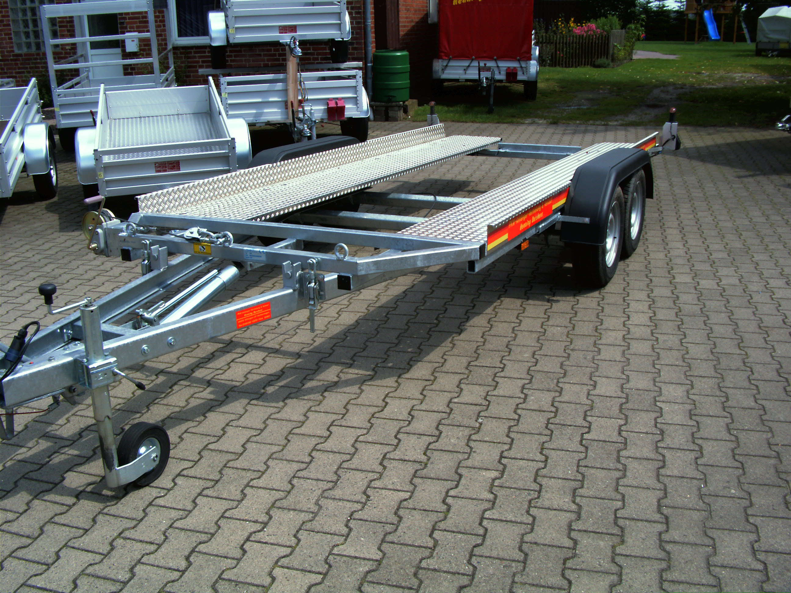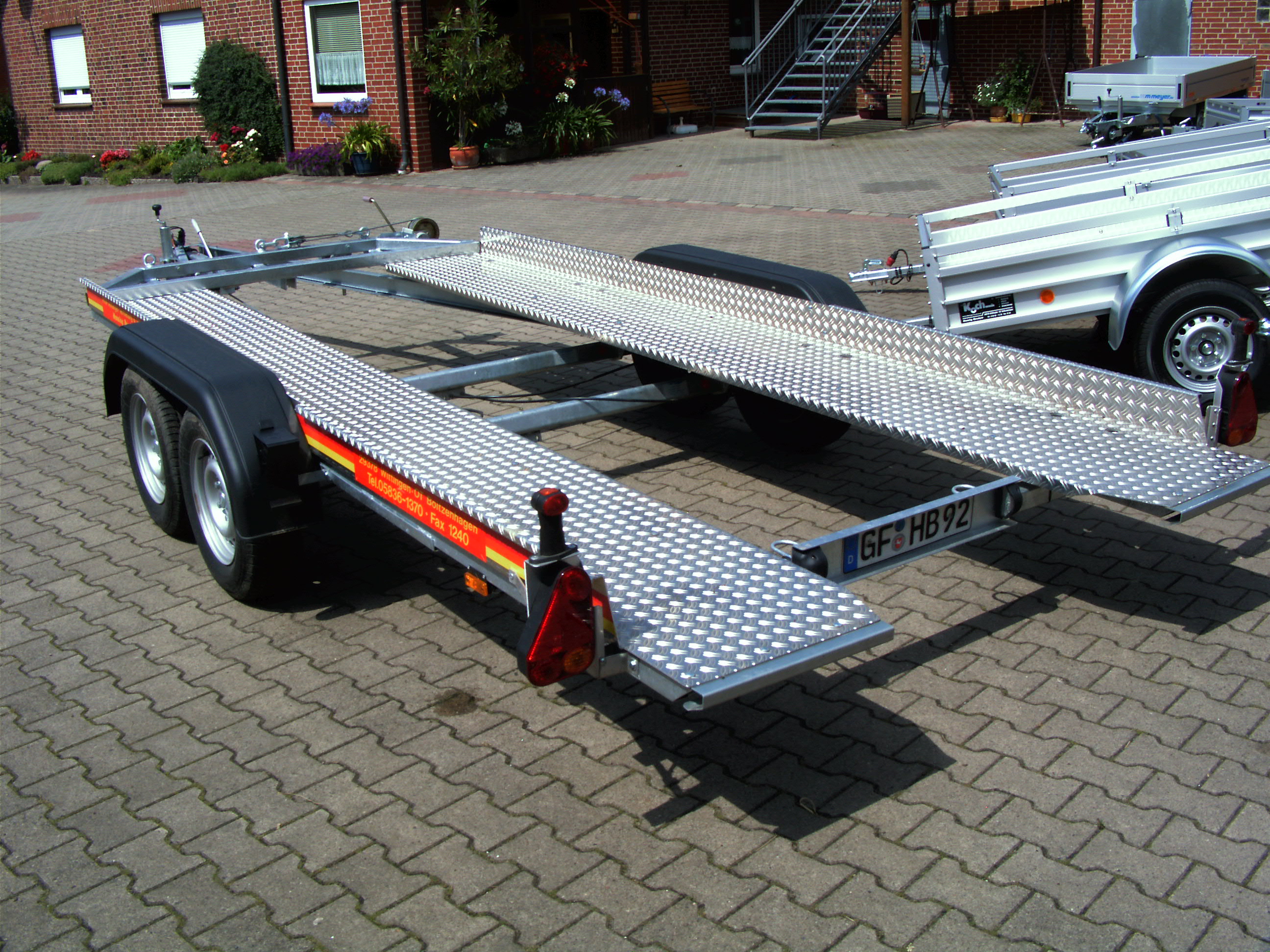 zul.Ges.Gew.: 1300 kg Nutzlast: 950 kg Länge Innen: 300 cm Breite Innen: 185 cm Höhe Innen: 10 cm Für 3 Motorräder mit Wippe und Auffahrschiene oder Smart Transport / mit 100 km/h Zulassung