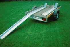 zul.Ges.Gew.: 750 kg Nutzlast: 600 kg Länge Innen: 250 cm Breite Innen: 150 cm Höhe Innen: 10 cm Für 2 Motorräder mit Standschienen und Auffahrschiene